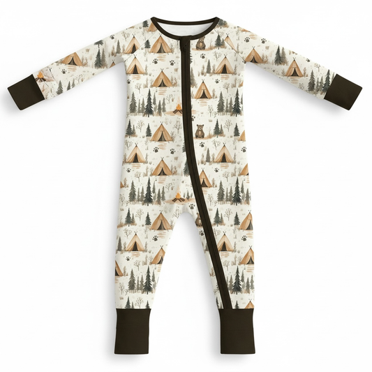 Camping Bears Bamboo Zipper Romper