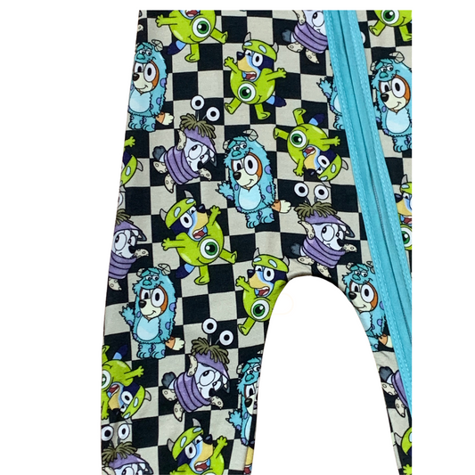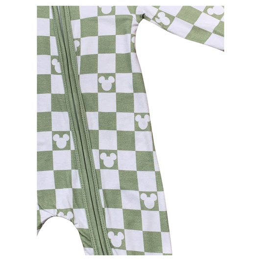 Checkered Mouse Ears Bamboo Romper (Light Green)