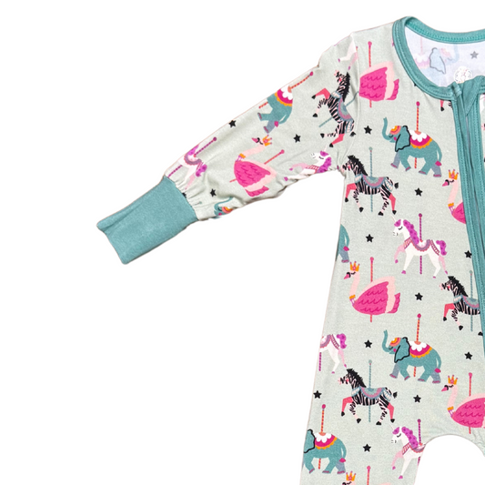 Carousel Animals Bamboo Romper (Mint)