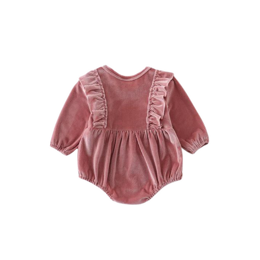 Pink Ruffle Velvet Romper