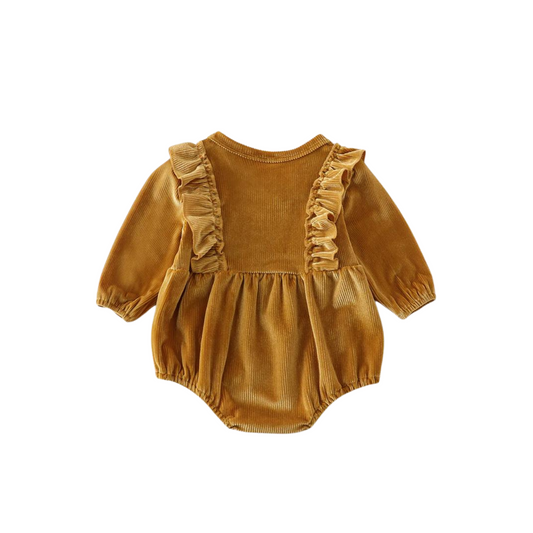 Gold Ruffle Velvet Romper