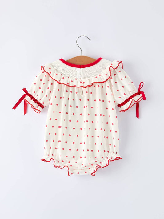 Valentine's Day Polka Dot Romper with Smocking Embroidery