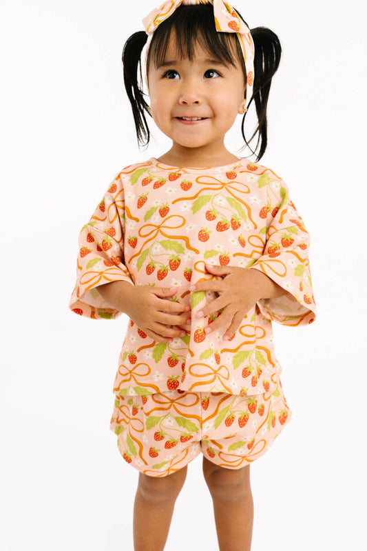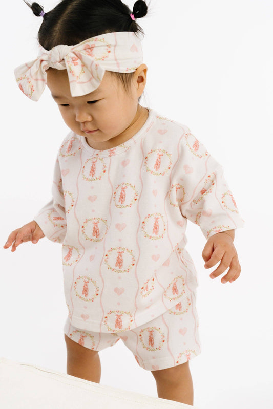 Girls Beige Coquette Bow Ruffle Pocket Button Legging Set