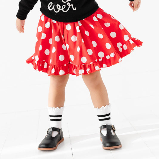 Red Bow Scalloped Knee Socks