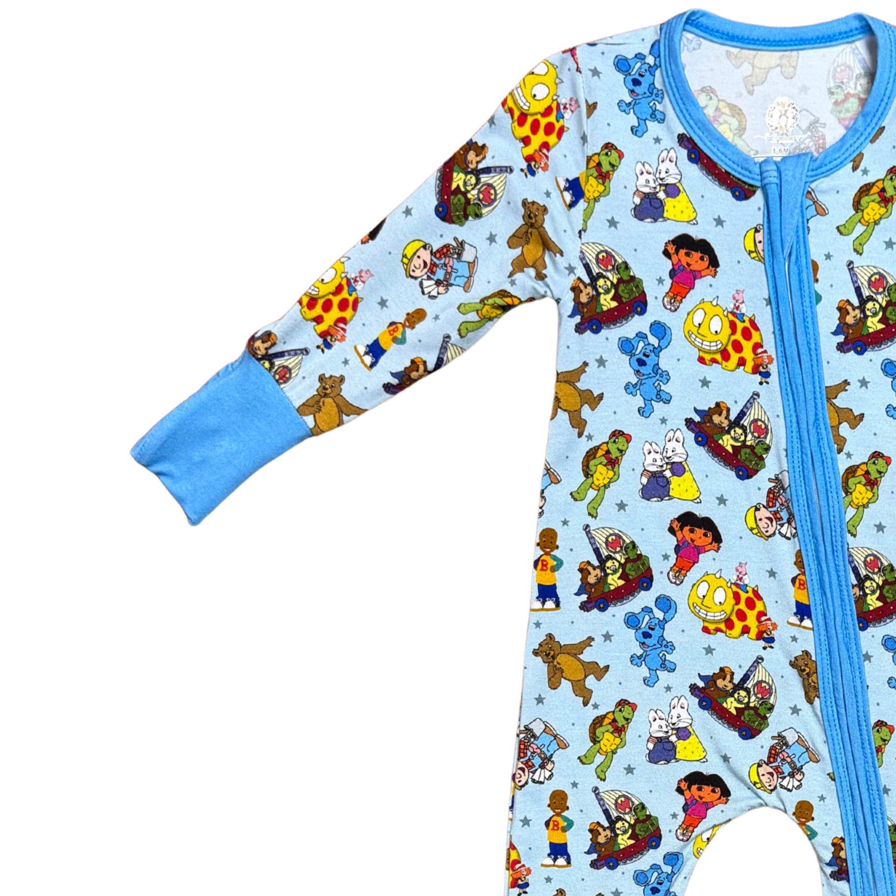 Step into nostalgia with this delightful 90's Cartoon Mashup Bamboo Romper! Featuring beloved characters from Blue's Clues, Maggie and the Ferocious Beast, and Dora the Explorer, this playful piece celebrates the golden age of Saturday morning cartoons. Crafted from soft, breathable bamboo fabric, it's perfect for little adventurers who love their classic shows. Comfortable enough for all-day wear, this romper brings back the magic of childhood with a modern, eco-friendly twist.