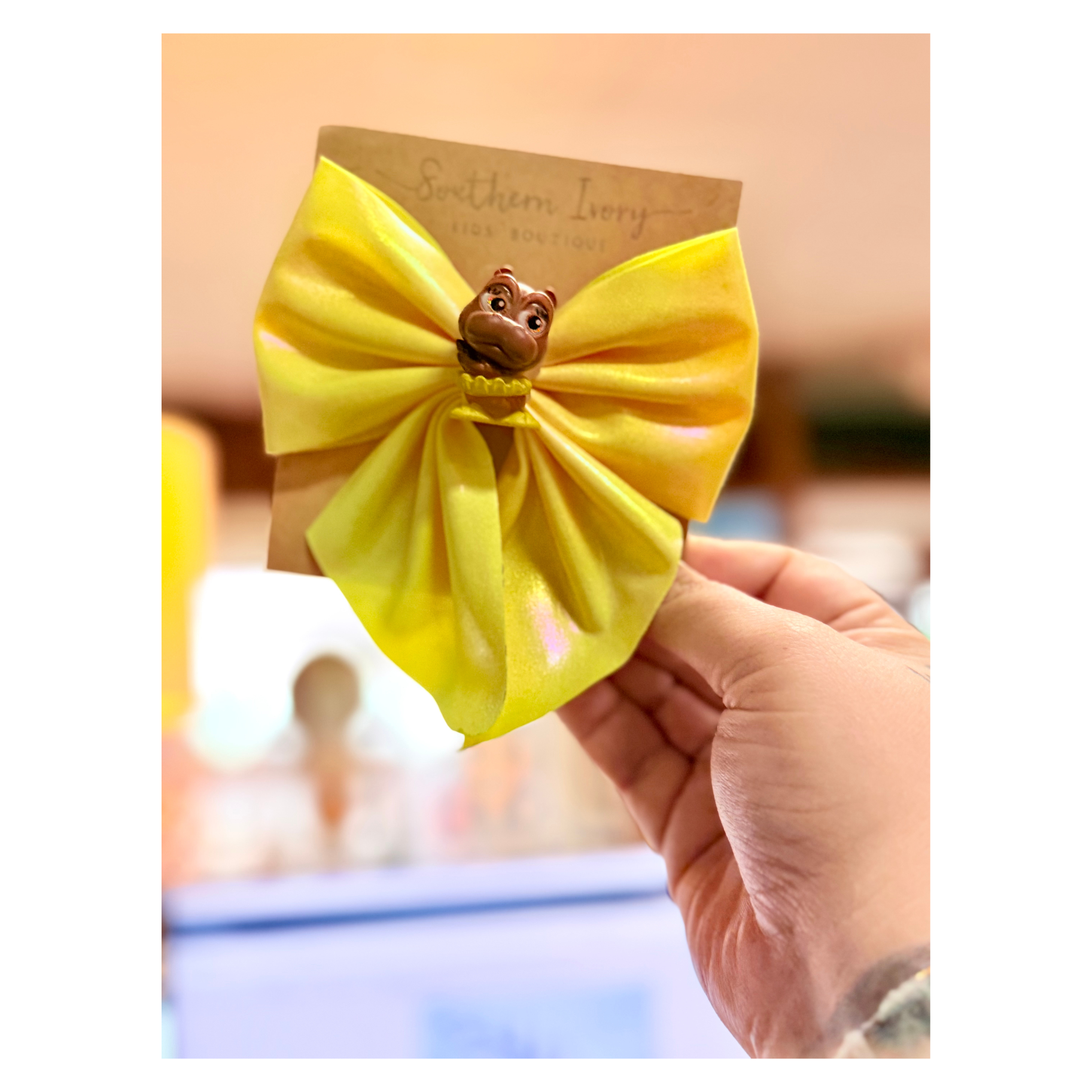 Inspired by the graceful Hyacinth Hippo from Disney's classic Fantasia, this enchanting bow brings a touch of whimsy and elegance to any outfit. Perfect for Disney fans and lovers of timeless animation, this charming accessory captures the beauty and poise of one of cinema's most beloved characters. Whether you're channeling your inner ballerina or simply celebrating your love for Disney magic, the Annabelle Bow adds a delightful flourish to your style. Twirl into nostalgia with this delightful tribute to animation history.