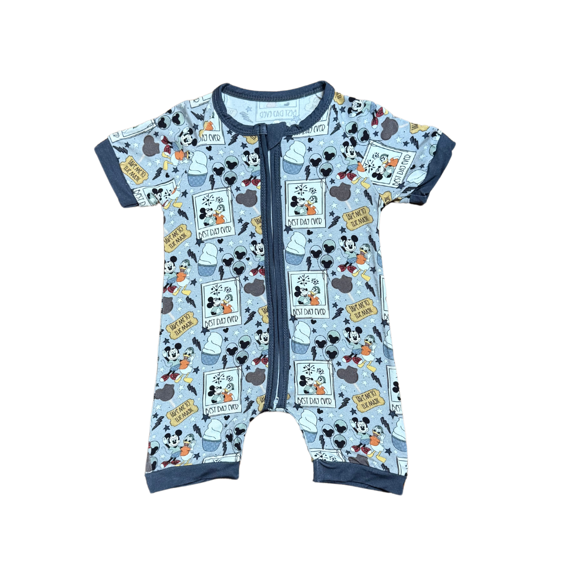 Experience the 'Best Day Ever' in our bamboo short romper featuring Mickey and Donald's adventures at Disney. Stay comfy while looking cute in this playful design. Perfect for a fun day out or just lounging around (with or without Mickey ears)!