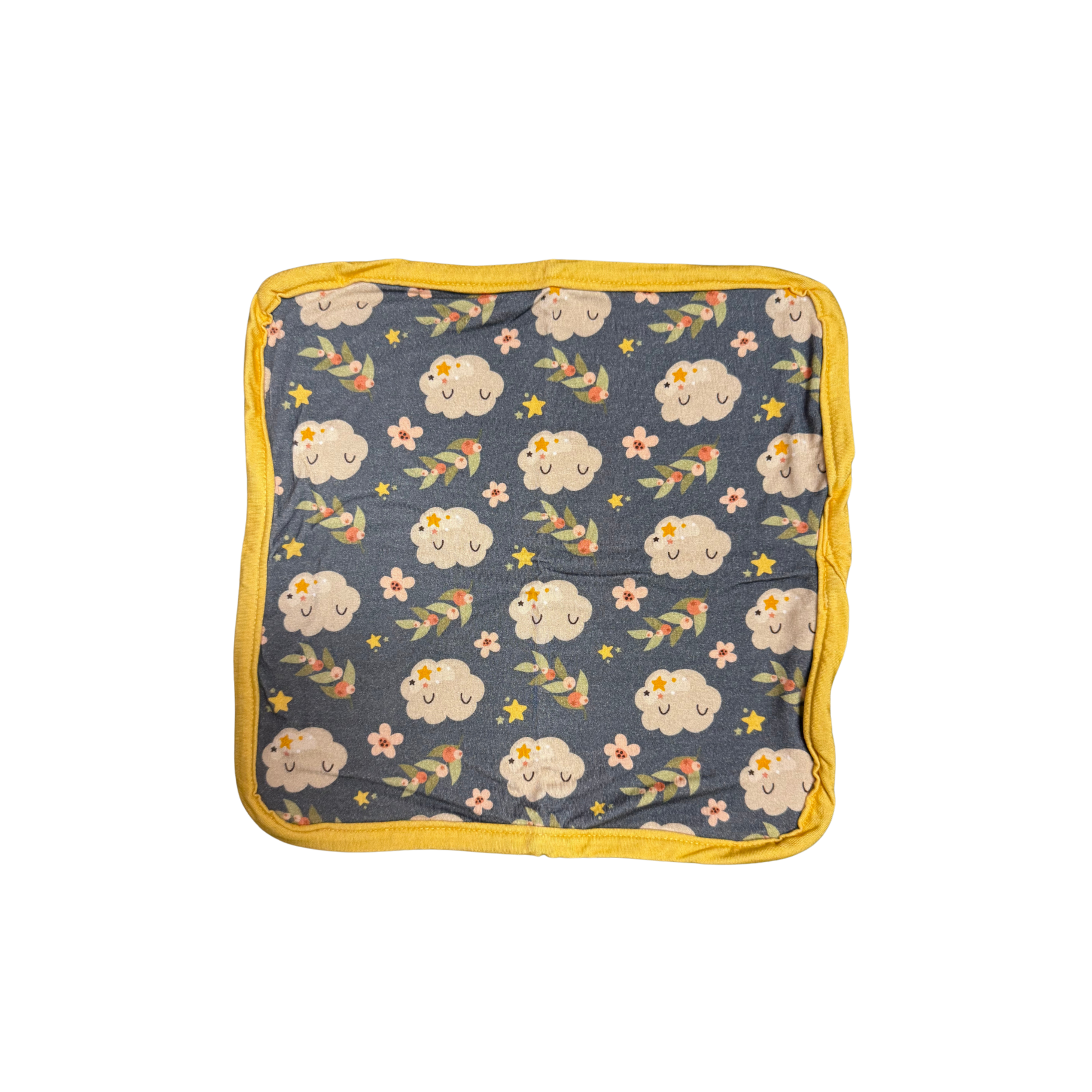Wrap your little one in the soft embrace of the Cute Little Clouds Bamboo Lovie. Featuring charming clouds and delicate flowers, this cuddly companion is perfect for snuggles and comfort. Made from gentle bamboo fabric, it’s cozy, breathable, and ideal for soothing your baby throughout the day and night. A playful friend to brighten every moment!