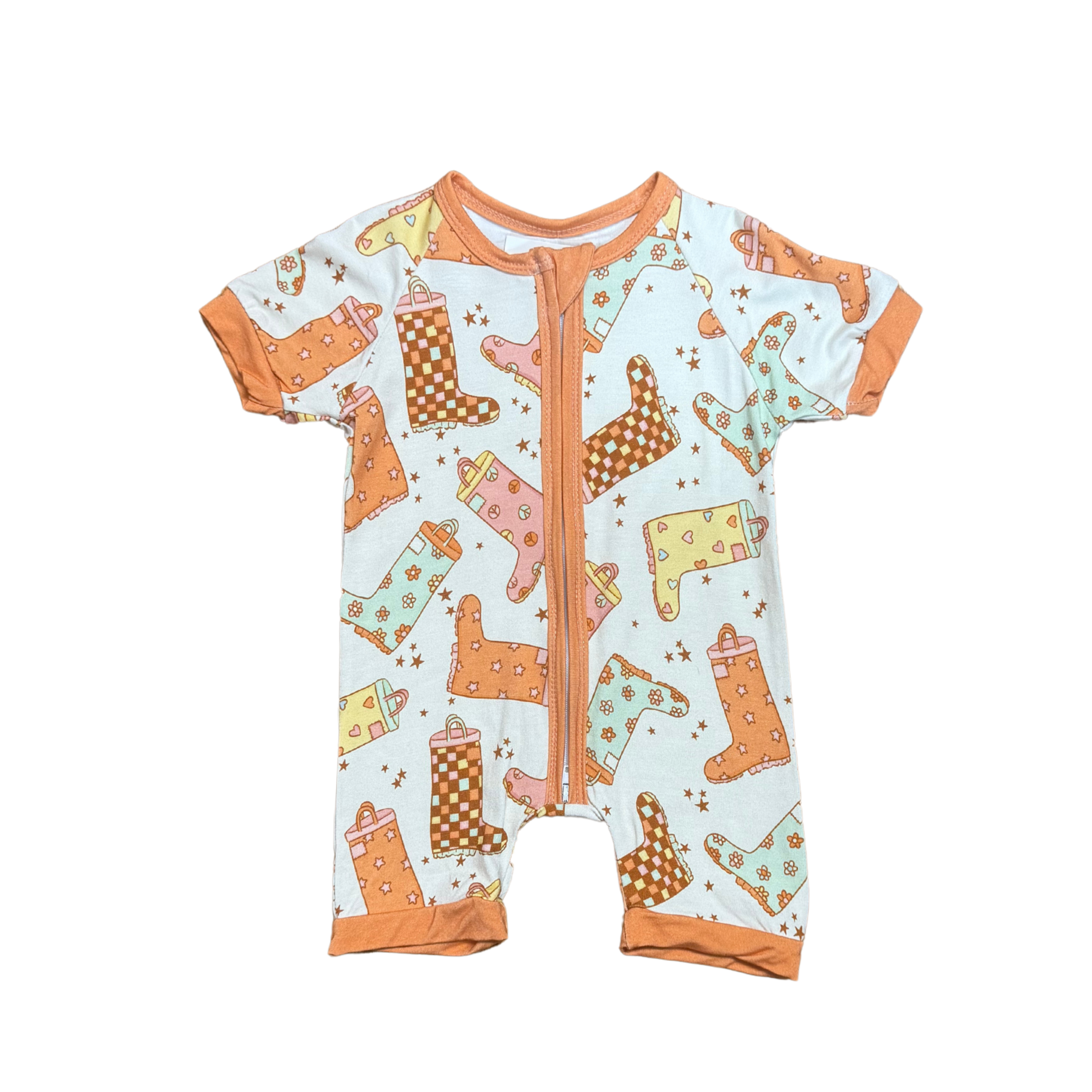 Get ready for rainy days with style in our Cutie Rain Boots Bamboo Short Romper! This playful romper features a fun rain boot print, perfect for the spring season. Don't let the rain stop you from looking cute and staying comfy.
