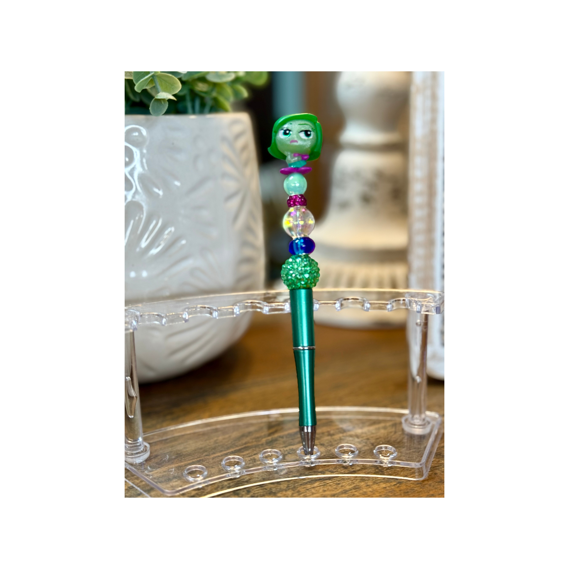All pens are plastic ballpoint pens with black refillable ink, retractable by twisting. All pens are adorned with fancy beads inspired by your favorite Disney characters and topped with a Disney Doorable.