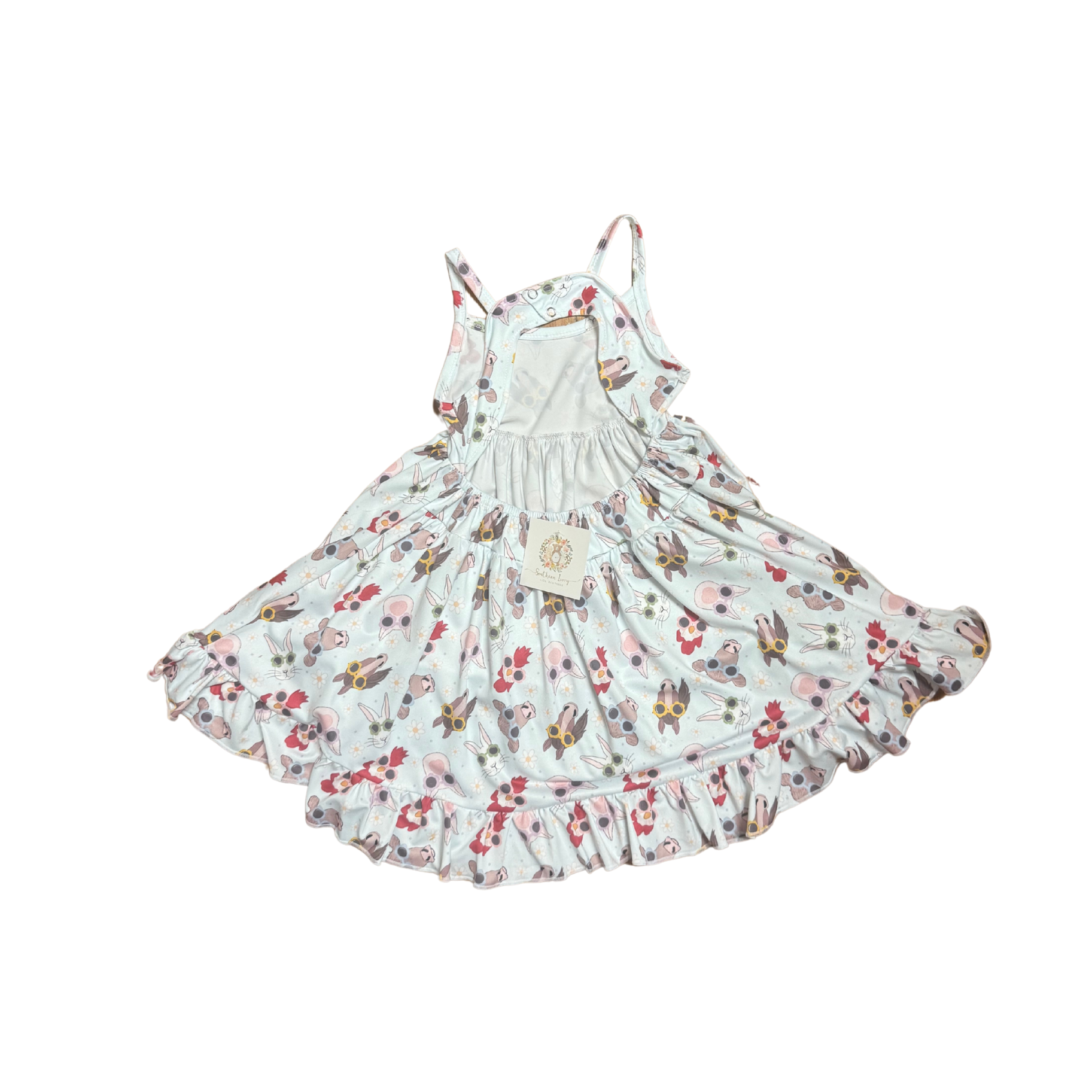 Bring a splash of fun to any day with the Farm Friends Twirl Dress, featuring adorable farm animals rocking cool sunglasses. This playful dress is perfect for little ones who love to spin and smile, combining comfort with a whimsical design that sparks joy and imagination. Ideal for sunny days and playful adventures!