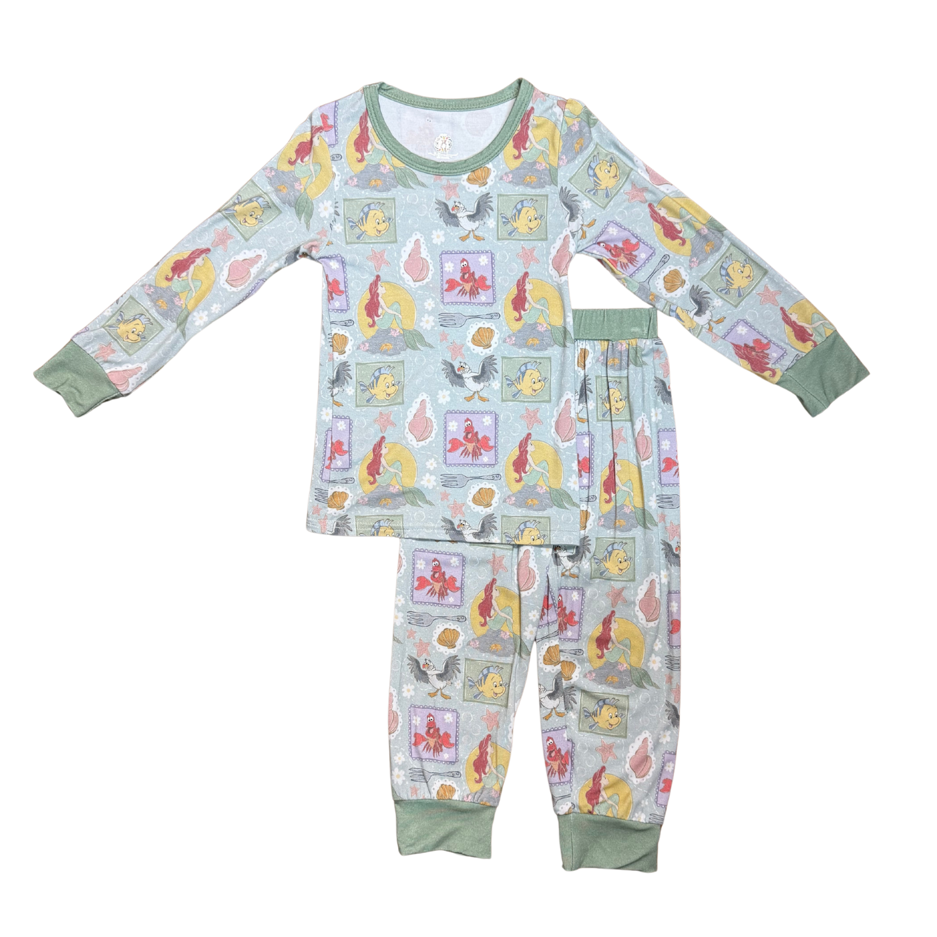Dive into dreamland with these whimsical bamboo pajamas inspired by everyone's favorite underwater adventure! Featuring beloved characters from The Little Mermaid, these cozy PJs bring magic to bedtime. Crafted from soft, breathable bamboo fabric, they're perfect for little mermaids and sea-loving kids who want to drift off to sleep surrounded by Ariel, Flounder, and Sebastian. Comfortable, charming, and oh-so-snuggly—sweet dreams are just a splash away!