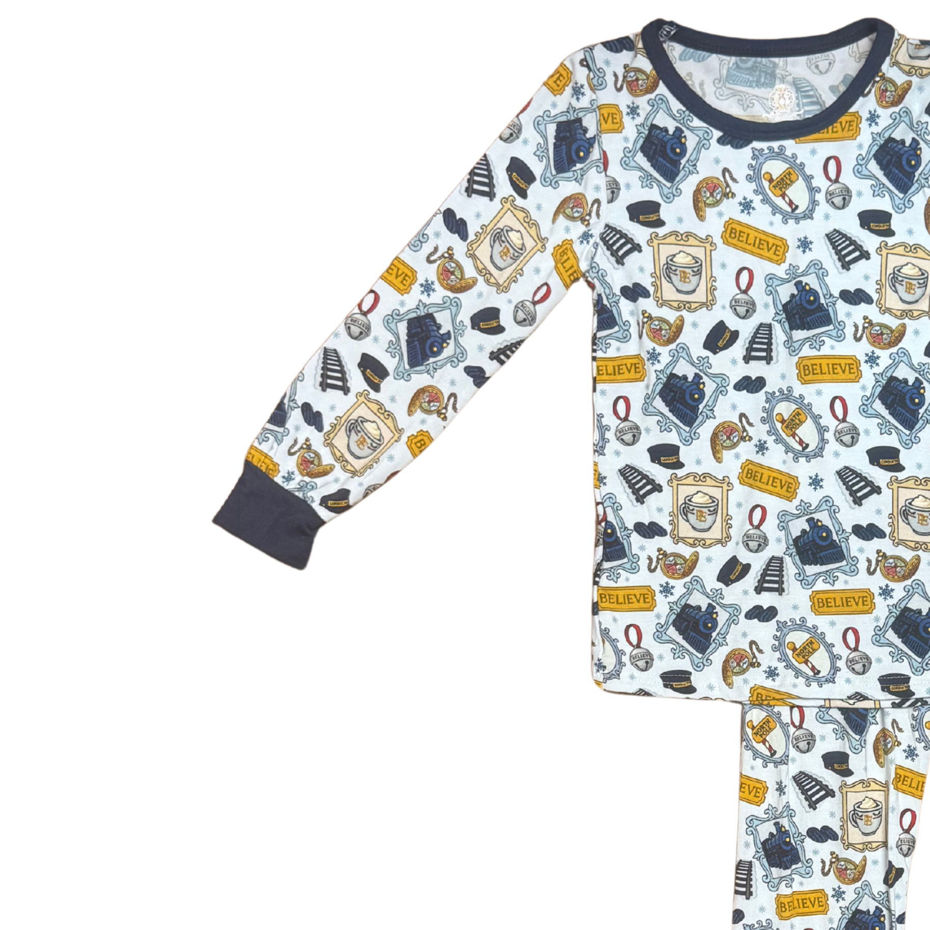 All aboard for cozy nights! These Polar Express-inspired bamboo pajamas bring the magic of the beloved holiday classic right to bedtime. Crafted from soft, breathable bamboo fabric, they're perfect for snuggling up with hot cocoa or rewatching your favorite winter adventure. Whether you're a devoted fan or looking for festive sleepwear that captures that whimsical, wintry spirit, these PJs deliver comfort and charm in every stitch. Choo choo—sweet dreams await!