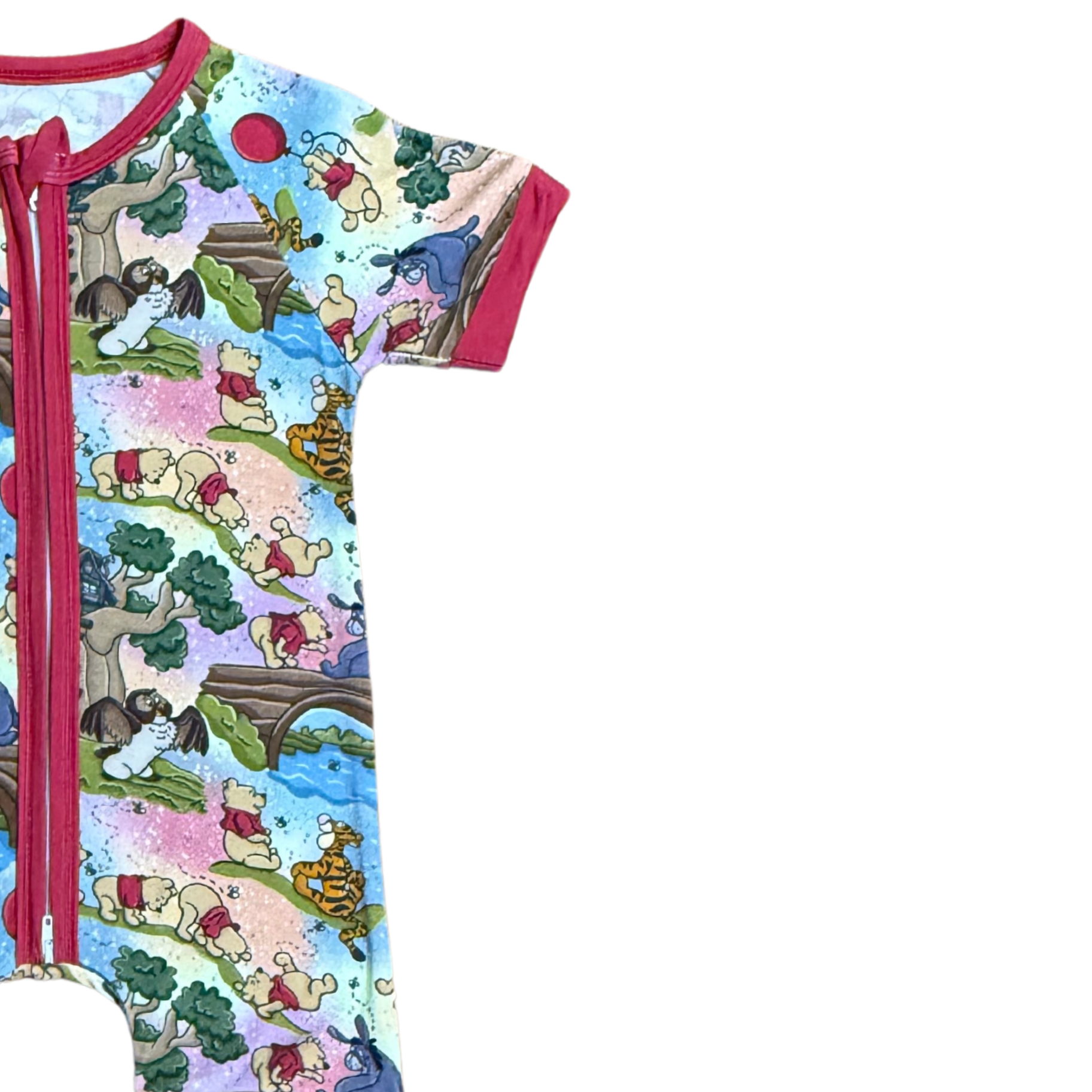 Your little one will be the cutest in the Hundred Acre Wood with this Pooh & Friends bamboo short romper. Made with soft bamboo fabric, this romper features Winnie the Pooh and friends, adding a touch of whimsy to any day. Perfect for play dates, nap time, or just lounging around, this romper will keep your little one comfortable and stylish.