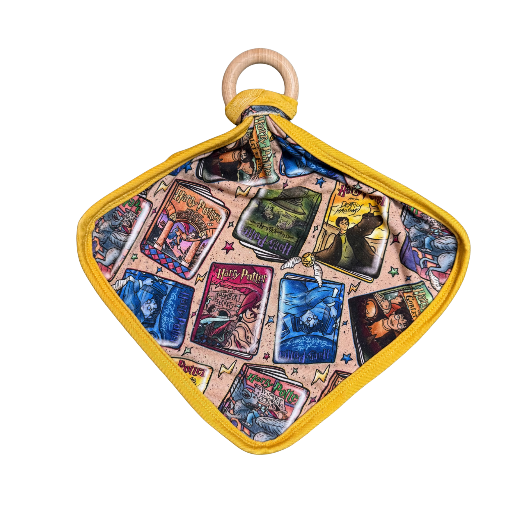 Our lovey is a mobile and attachable mini security blanket, made from the same material as our beloved rompers. It comes with a detachable ring made from all-natural beech wood to relieve teething symptoms. Polished to smooth perfection, the wooden ring has no treatment or coating so you can rest easy knowing your baby is safe. Easily unthread the ring and attach the lovey to baby’s pacifier, teether, toy, or our ring sling!