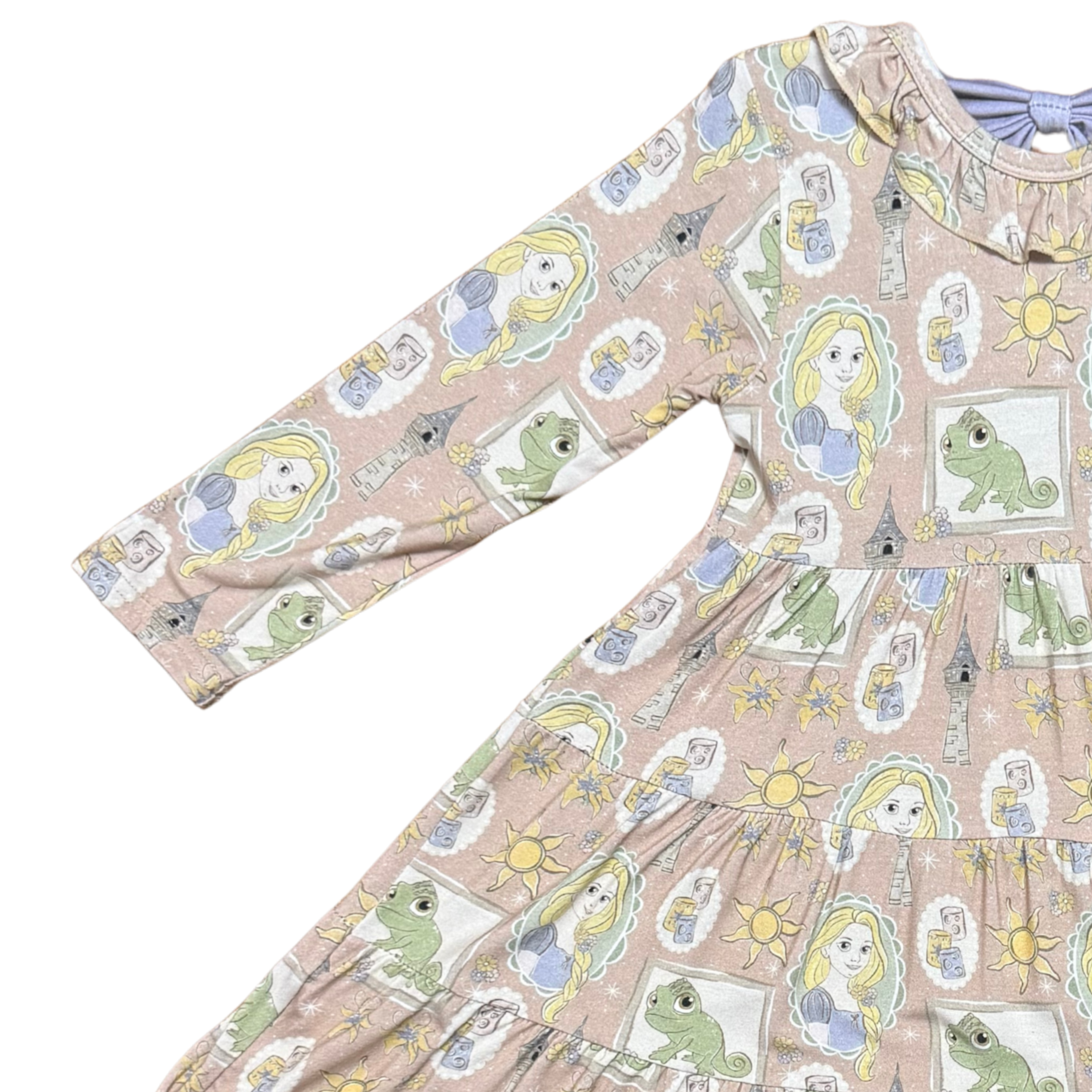 Let your little one twirl into adventure with this enchanting Rapunzel-inspired dress! Featuring flowing bamboo fabric in soft pastels, this playful princess gown captures the magic of Corona with its signature golden accents and whimsical details. Perfect for dress-up adventures, birthday celebrations, or anyone who dreams of long hair and adventure. Comfortable enough for all-day wear, magical enough for happily-ever-after moments.