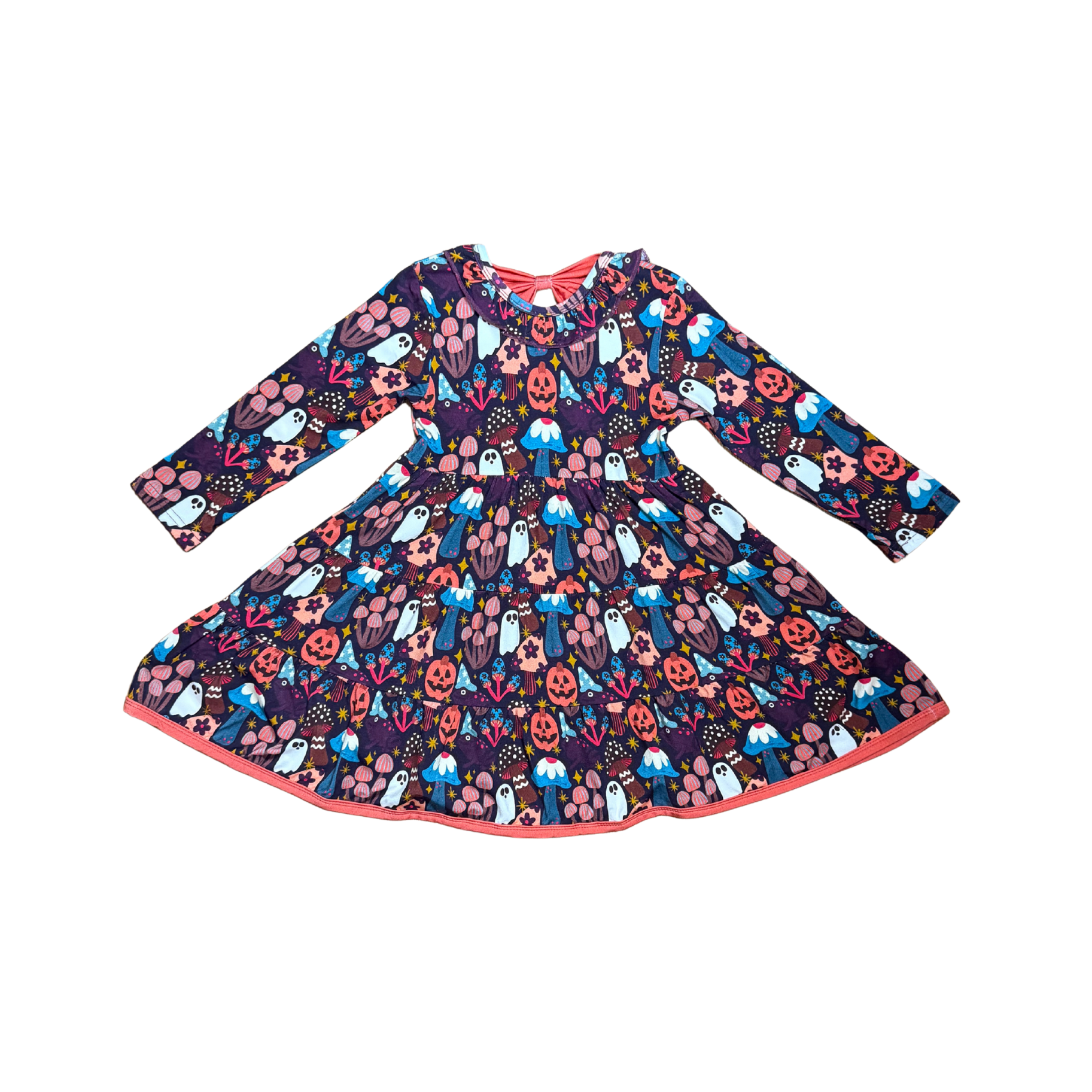 Step into a whimsical Halloween adventure with the Spooky Woods Bamboo Twirl Dress. Adorned with playful mushrooms and cheeky frogs, this dress brings the magic of the forest to your little one’s wardrobe. Crafted from soft bamboo fabric, it offers comfort and twirl-worthy fun for all their spooky celebrations. Perfect for trick-or-treating or festive parties, this dress combines cozy wear with enchanting charm.