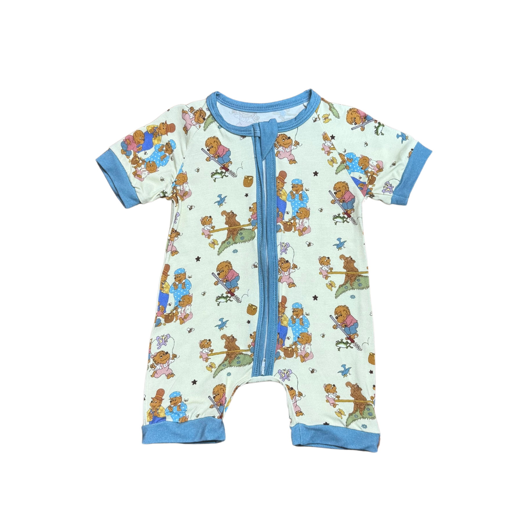 Introduce your little cubs to the Berenstain Bears with this fun and eco-friendly short romper! Made with soft bamboo fabric, this romper is perfect for storytime and playtime. Get your kids excited about reading with this playful children's book inspired romper.