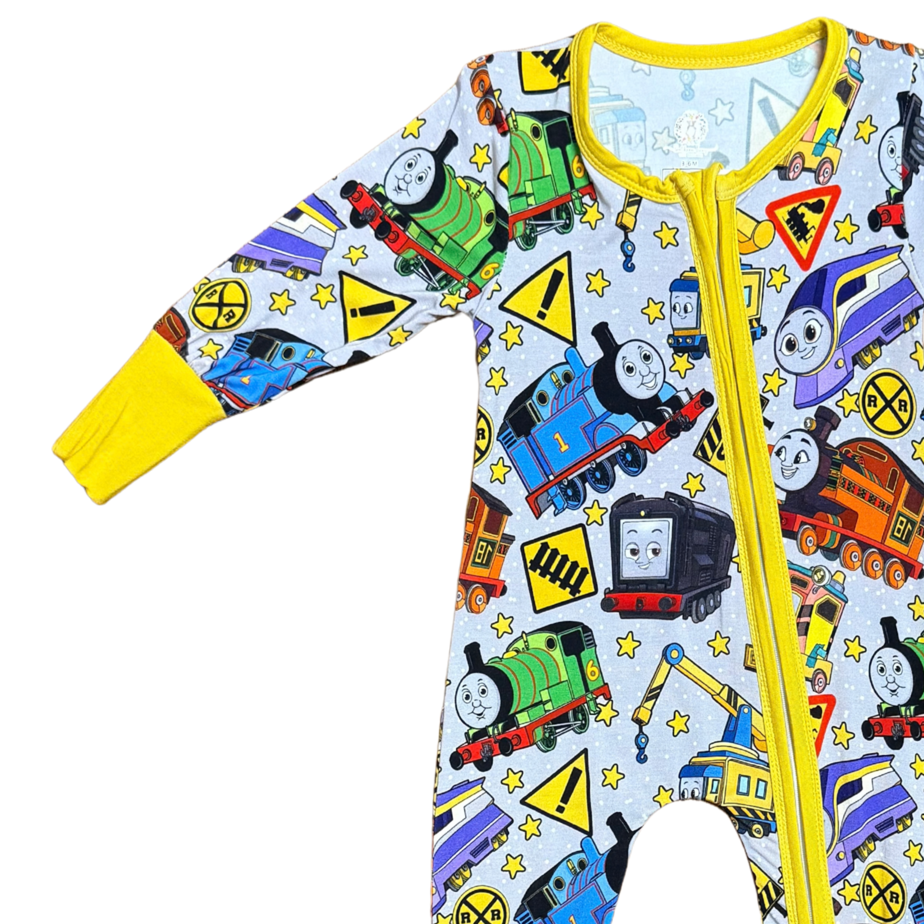 Let your little conductor take the rails in style with this charming Thomas the Train & Friends bamboo romper. Crafted from soft, breathable bamboo fabric, it keeps your child comfortable all day long—whether they're playing pretend or heading out on adventures. The cheerful blue design features beloved characters that'll have any fan grinning from ear to ear. Perfect for playdates, casual outings, or cozy days at home, this romper combines comfort with that classic Thomas magic kids adore.