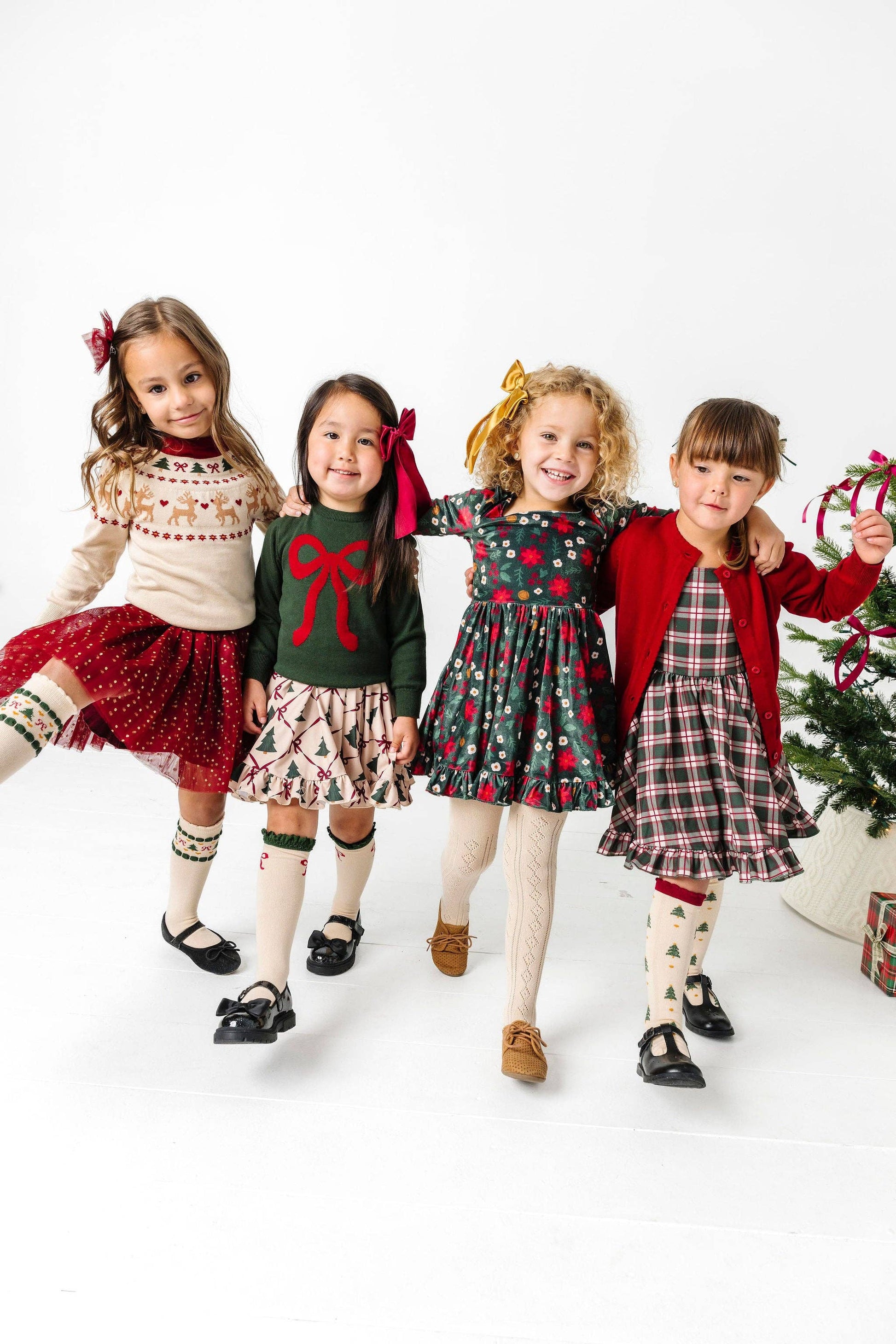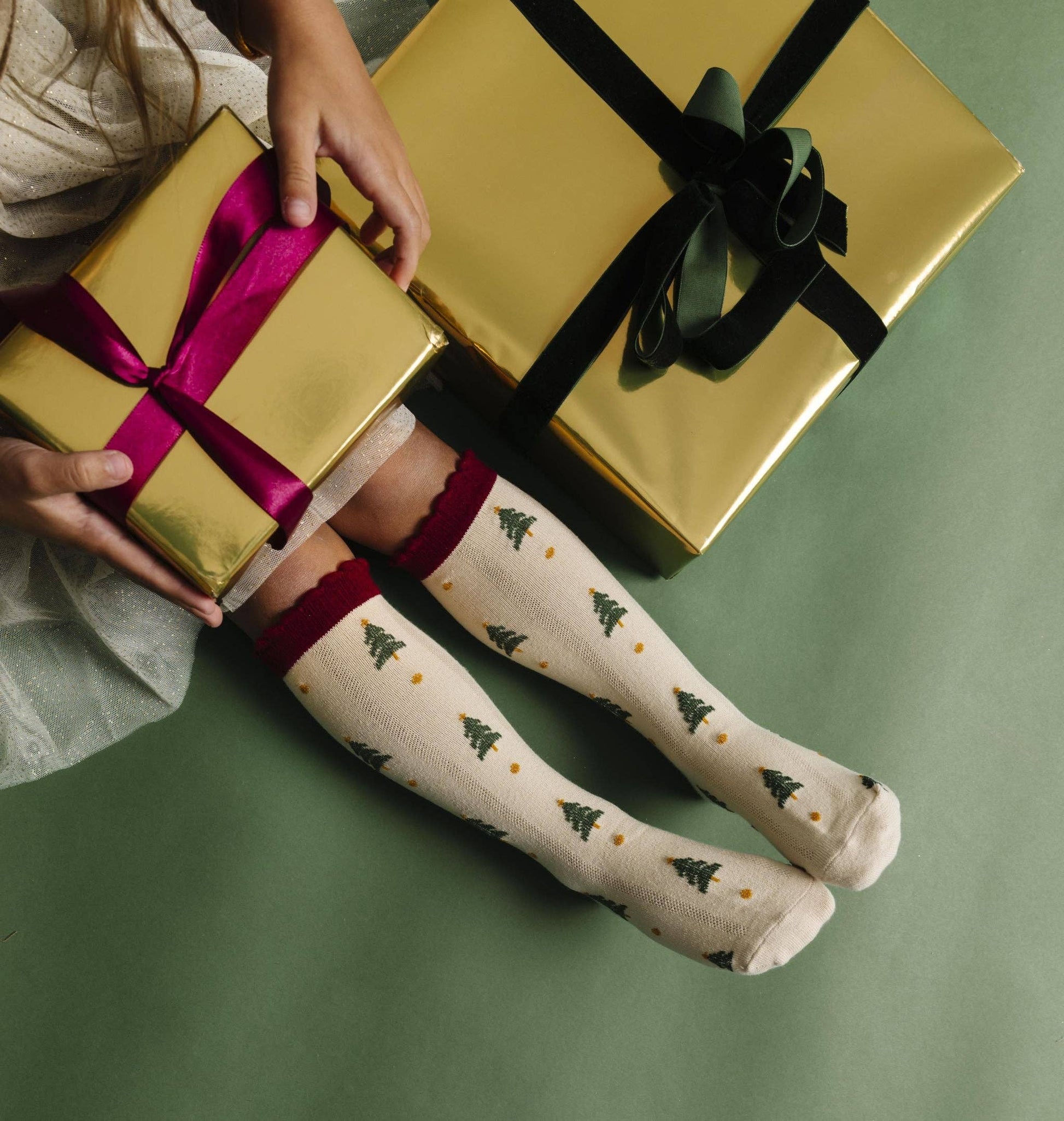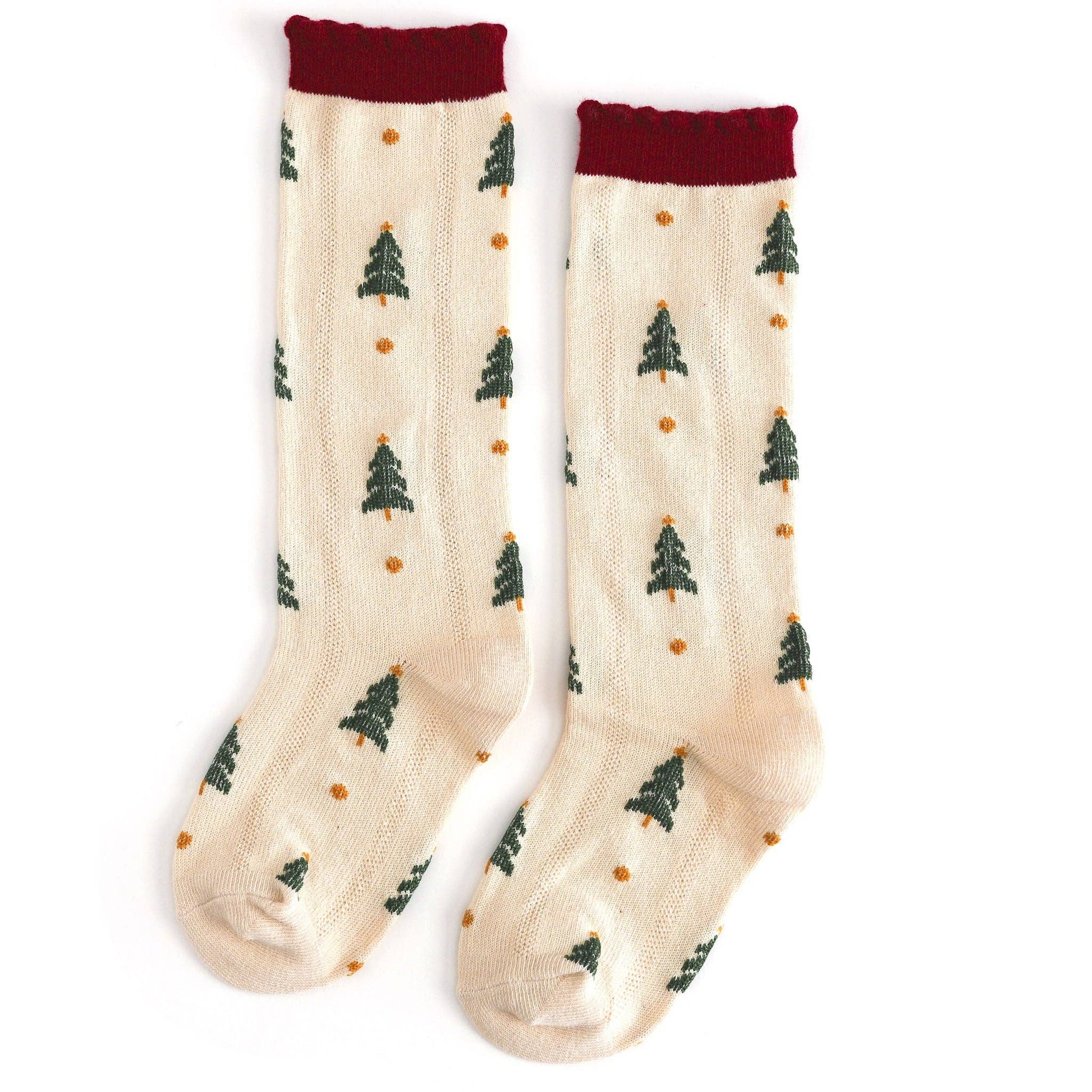 Tree Farm Scalloped Knee Highs Our scalloped knee high socks are a new fan fave! And for good reason! Perfect for all seasons and styles- with the sweetest scalloped detail. We are certain they'll fit into your little one's wardrobe.